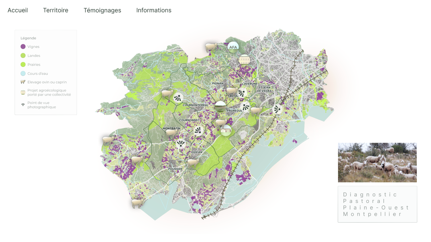 La métropole de Montpellier se développe rapidement. Afin de conserver les fonctions agricoles de sa Plaine-Ouest, nous avons effectué un diagnostic pastoral et cartographique de son histoire, acteurs et enjeux.